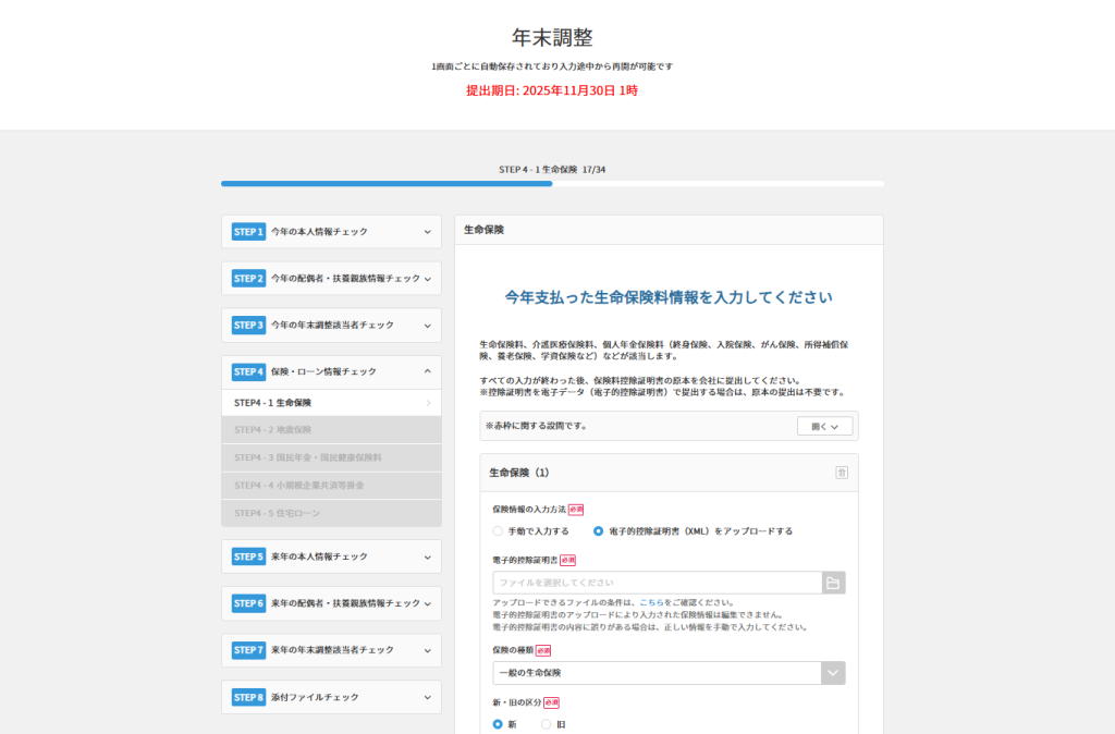 生命保険・地震保険の電子的控除証明書(XML形式)による申告に対応しました。これにより、従業員は紙の証明書を提出する手間が省け、より手軽に年末調整を行えます。