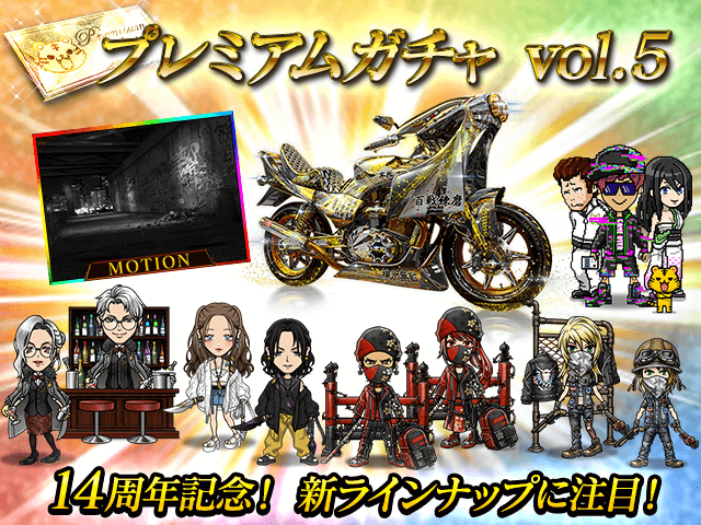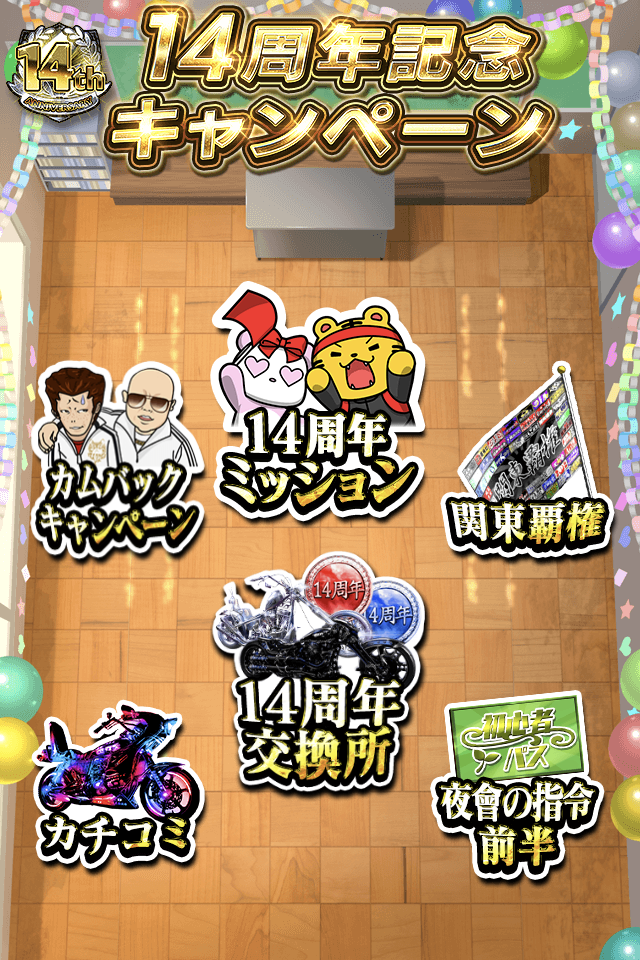 14周年を記念し、カチコミ伝説で14周年記念バイクが入手可能。他にも豪華報酬多数!
