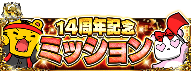 ゲームをプレイしてミッションをクリアし進捗を上げることで報酬獲得。前半・後半ともに14周年特別交換所で使用できる14周年メダルが手に入るチャンス!