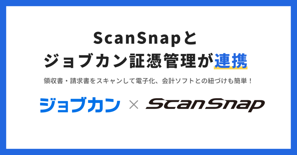 『ジョブカン証憑管理』、国内シェアNo.1イメージスキャナー『ScanSnap』と連携を開始 請求書・領収書の自動保存で、経理業務の負担を軽減