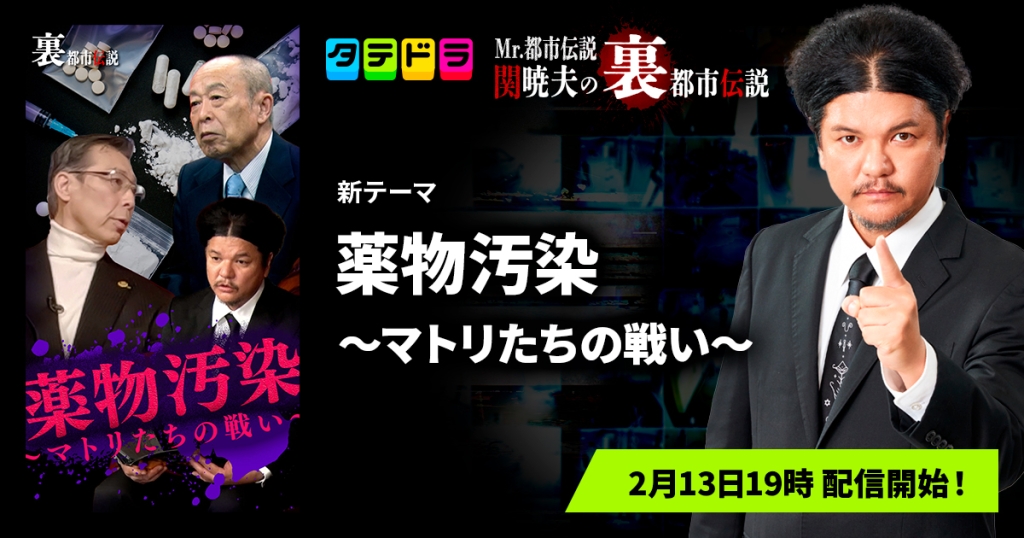『Mr.都市伝説 関暁夫の裏都市伝説』、新作「薬物汚染〜マトリたちの戦い〜」全17話を2月13日(金)より「タテドラ」で配信開始 元麻薬取締官(通称:マトリ)2名をゲストに招き、身近に潜む薬物汚染の現状に迫る