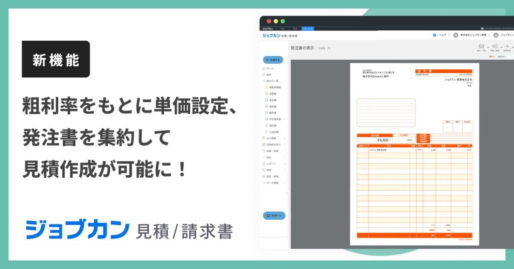 『ジョブカン見積/請求書』、正確な原価・粗利管理と業務効率化を支援する「見積作成・価格算出機能」を強化 粗利率をもとにした単価設定や、複数発注書を集約した見積書作成が可能に