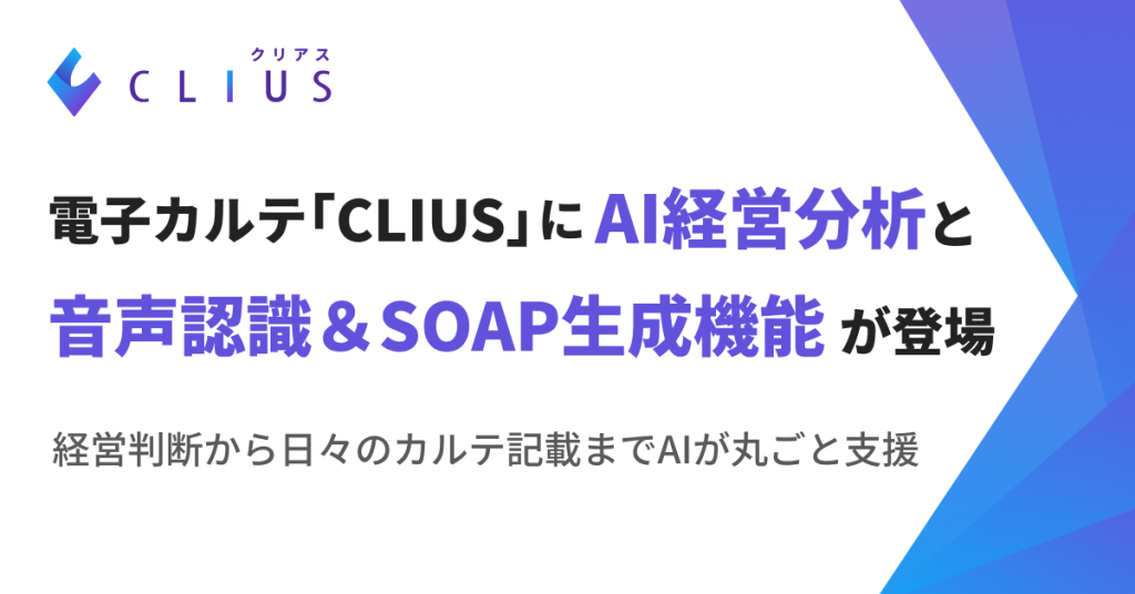 電子カルテ × AI で診療と経営をトータル支援クラウド型電子カルテ「CLIUS(クリアス)」、「AI経営分析」と「音声認識&SOAP生成機能」を提供開始