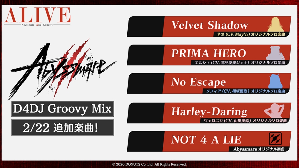 株式会社DONUTS(東京都渋谷区、代表取締役:西村啓成)は、DJをテーマとしたメディアミックスプロジェクト『D4DJ』のDJユニット、Abyssmare(アビスメア)の単独コンサート